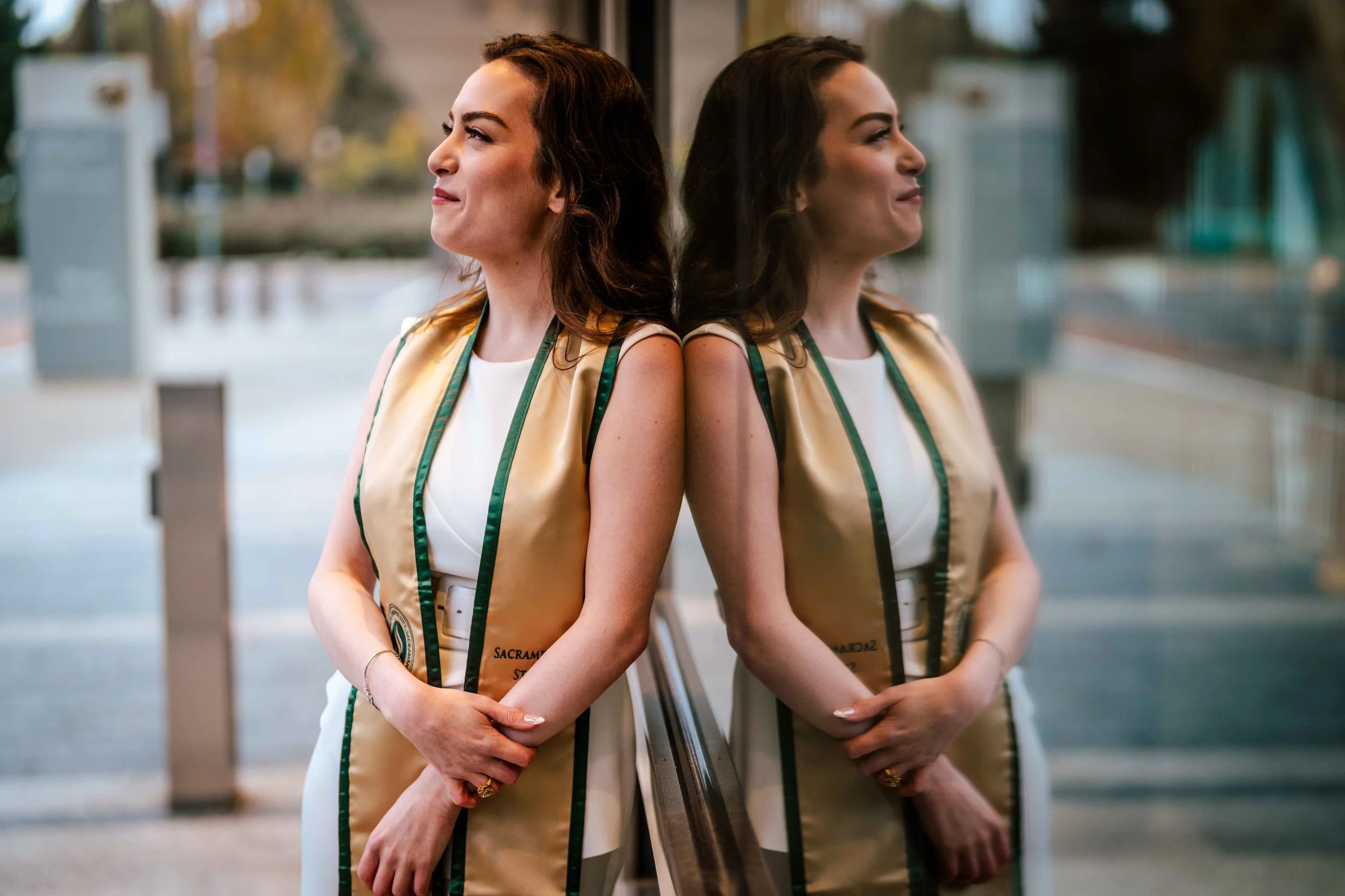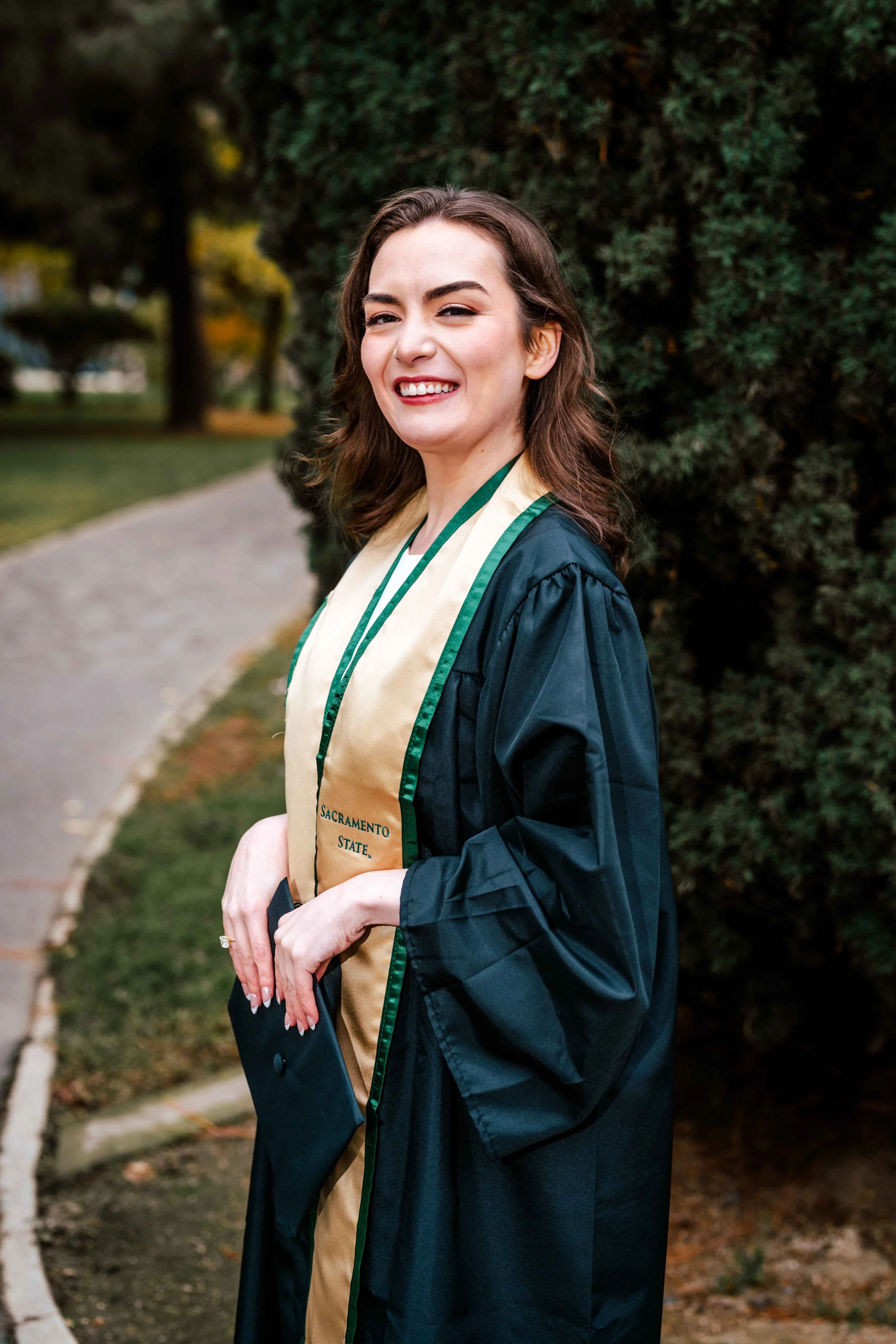 Winter grad sessions have a vibe all their own, and I love them. Brooke contacted me for her graduation session last month and we braved a cold Sacramento day for our session. I recommended the area around the Capitol Rose Garden for our session as it is a great location for both photos around nature and a more urban look. The overcast skies on the day of our shoot provided a nice even lighting and a muted tone for the pictures. I loved the colors and the feel of the photos we ended up with.