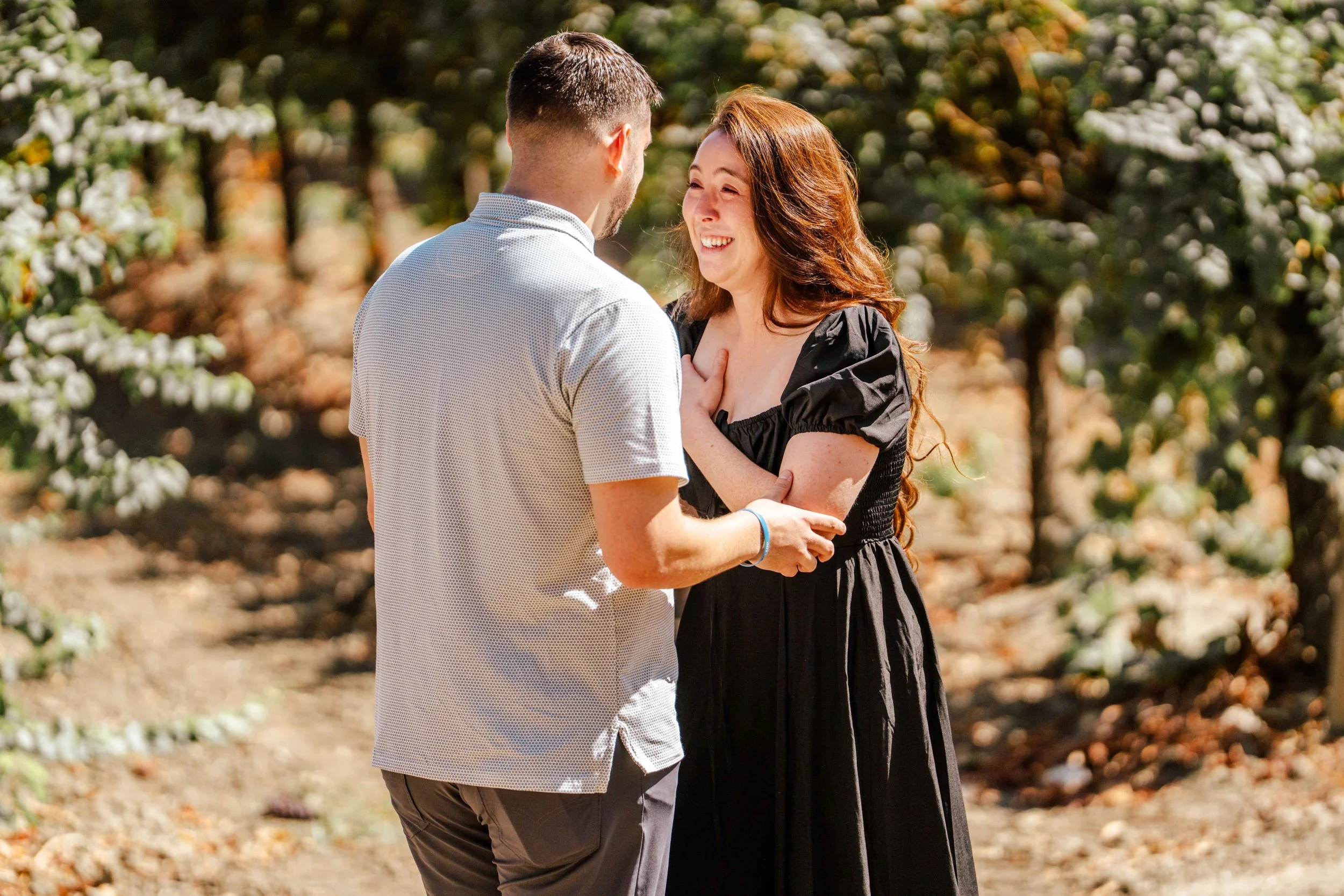 After the initial surprise I always make my way down to the couple and reveal myself. I introduce myself and give the couple my congratulations. At that time we do a quick little mini shoot to really solidify the moment in pictures. The photos taken at this time turn out great for announcements and invitation cards. I work pretty quickly here because I want the couple to enjoy this special moment without me tagging around for too long.