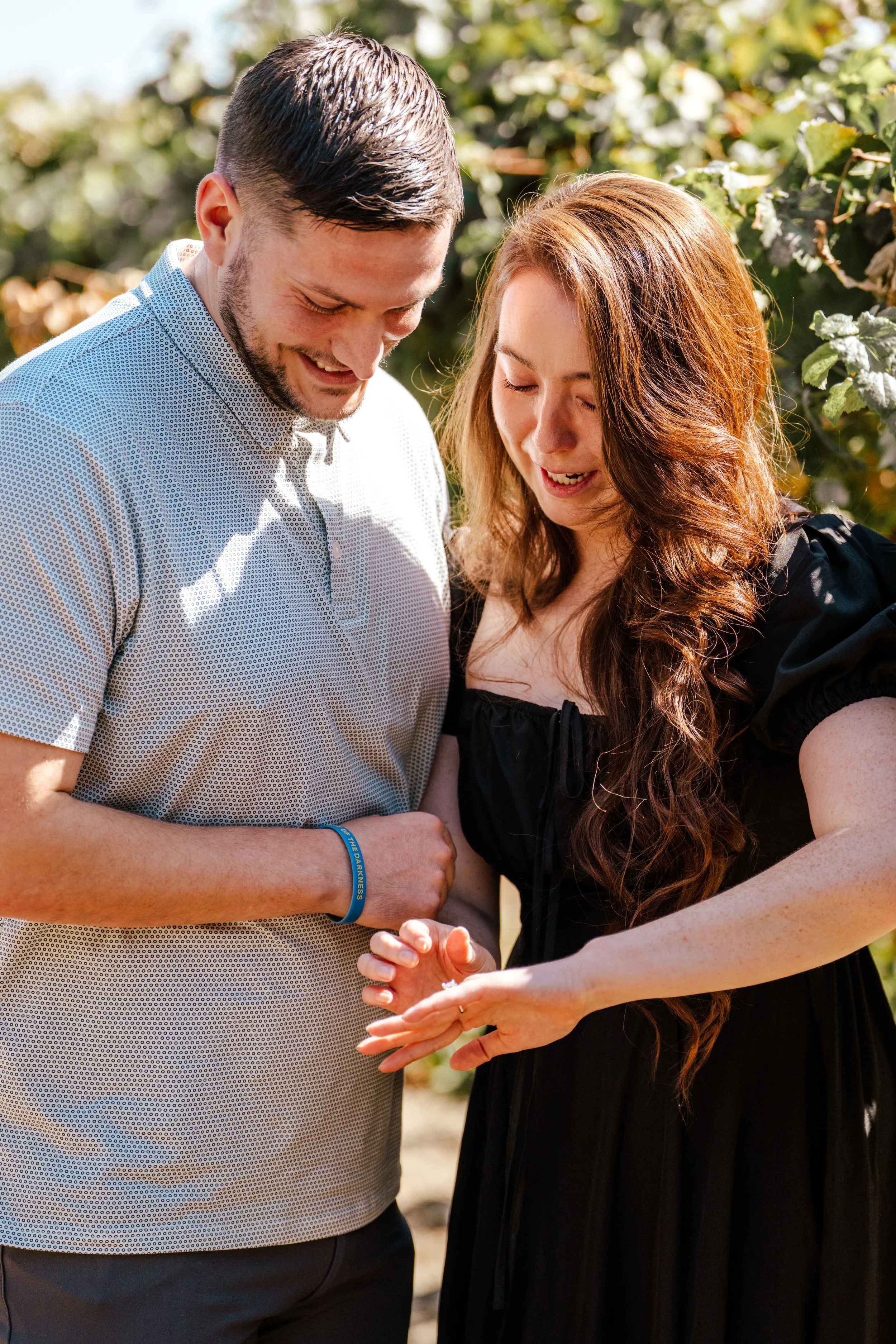 Maryann contacted me on behalf of her future son-in-law to capture his wedding proposal at Bogle Vineyards. It was a beautiful day with perfect weather. Maryann had already contacted Bogle and asked for permission to be in their fields. It was the perfect set up, but they just needed someone to be there to capture it… so that’s where I came in! We talked through the entire plan on the phone and I made sure to get to the vineyard early to get ready and in position. I found a nice elevated spot facing the location that they had planned the proposal to be. These moments happen very quickly and tend to go by faster than you think, so I made sure to be ready at all times. I saw the couple start to move from the seating area to the vineyard so I locked the couple into my viewfinder and shot, shot, shot!
