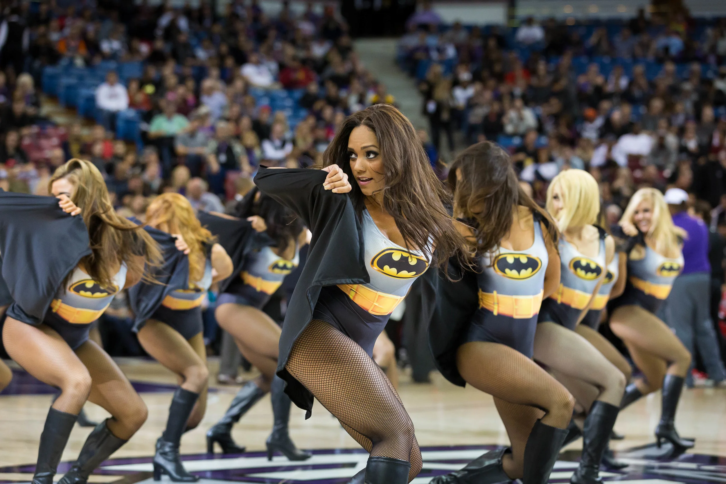 The Sacramento Kings Dancers all wore Batman outfits during their first performance. I remember seeing them learn this routine way back in the summer during their mini-camp. Seeing it come together on the court was very satisfying.