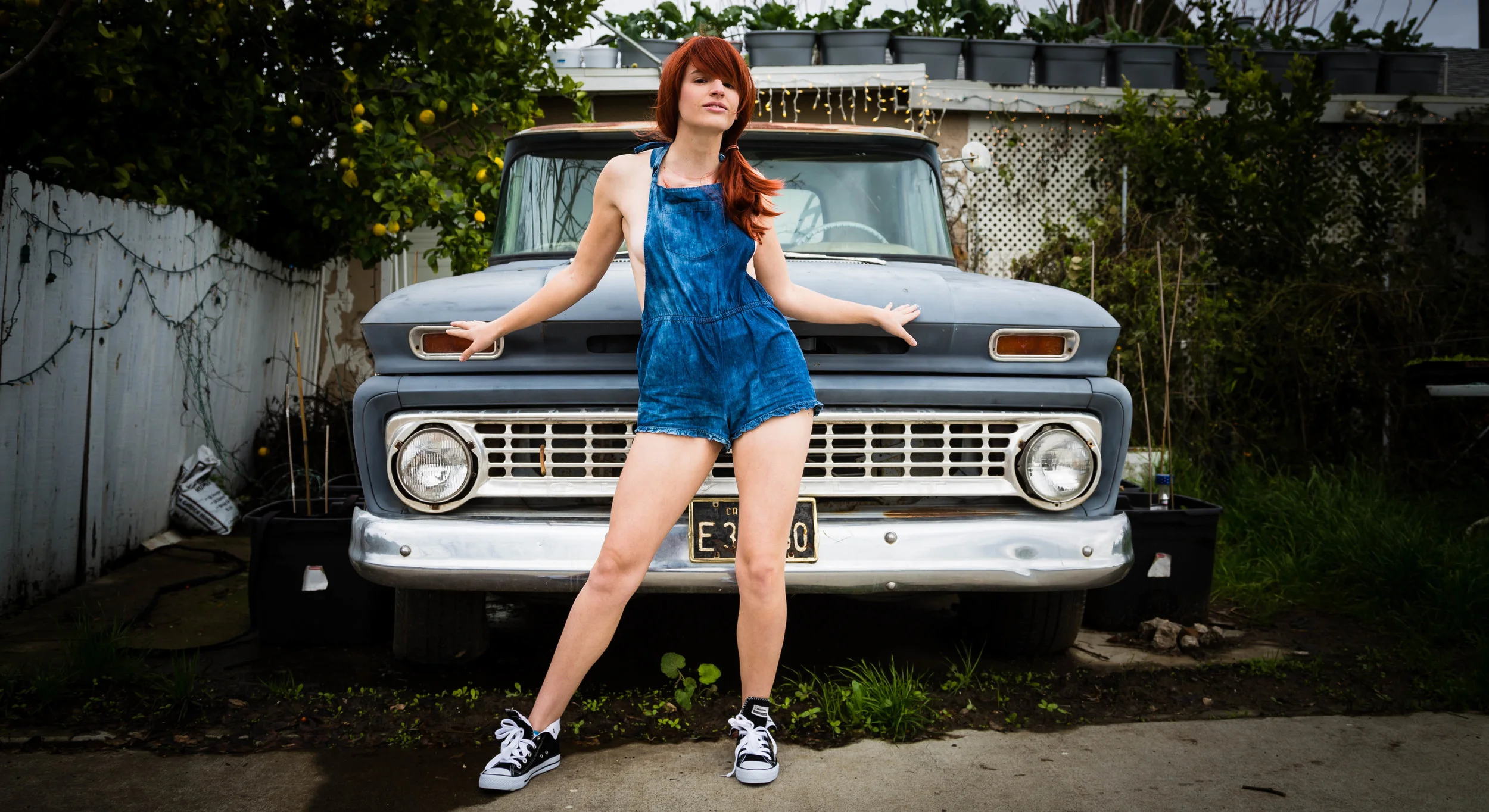 We actually saw an old truck parked in someone's driveway near our first location. I decided to 'borrow' the truck for a background. We definitely felt a bit nervous running over there for the shot, but I think it was worth it... what a cool old looking truck!