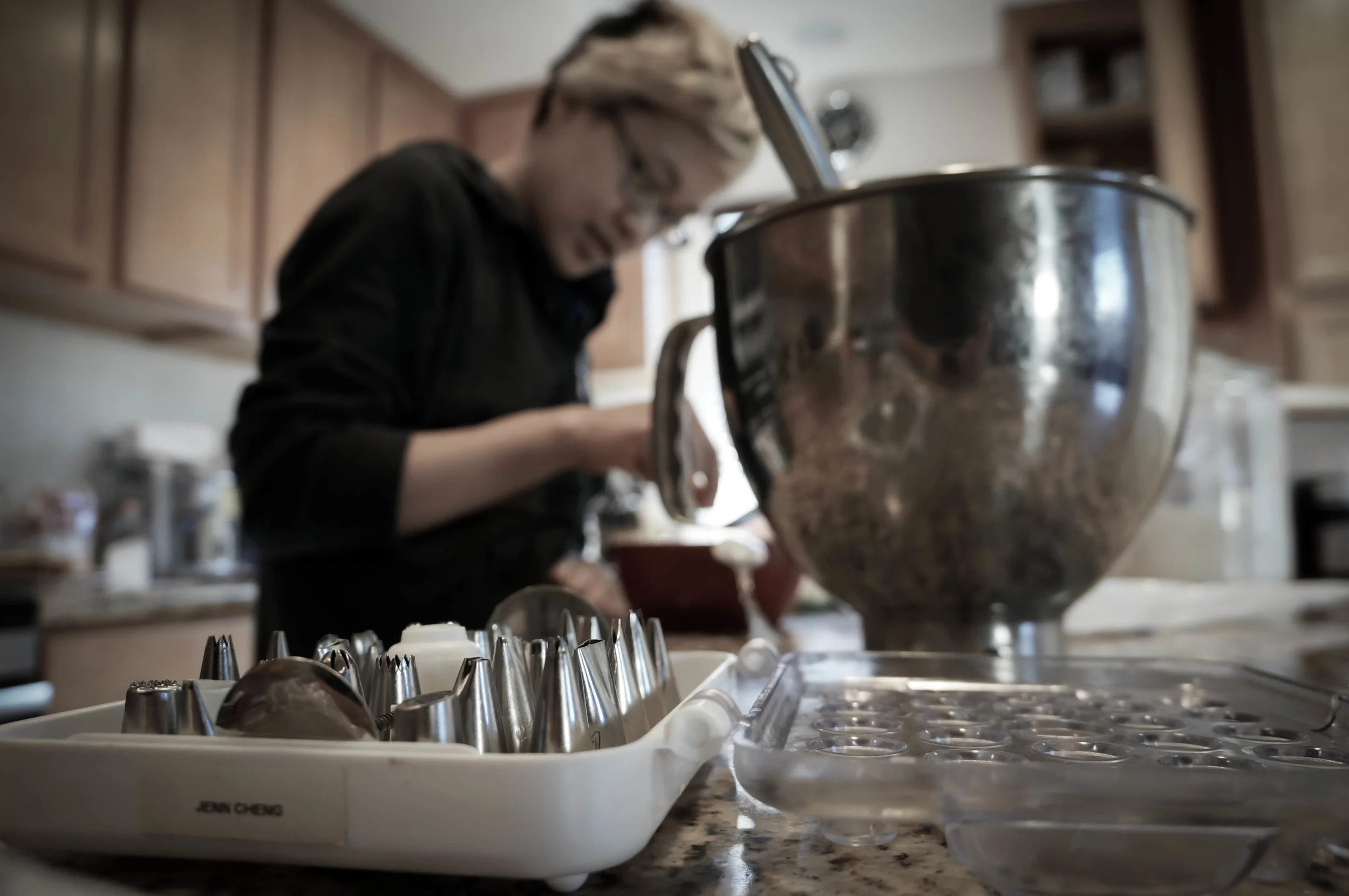 My wife has her own baking company, Love Baked, and this week she has been baking non-stop for a friend's wedding coming up this weekend. I honestly don't know anyone who works harder than she does - she is tireless in her efforts. The best I can do is capture some of what she does... and do her dishes, of course!