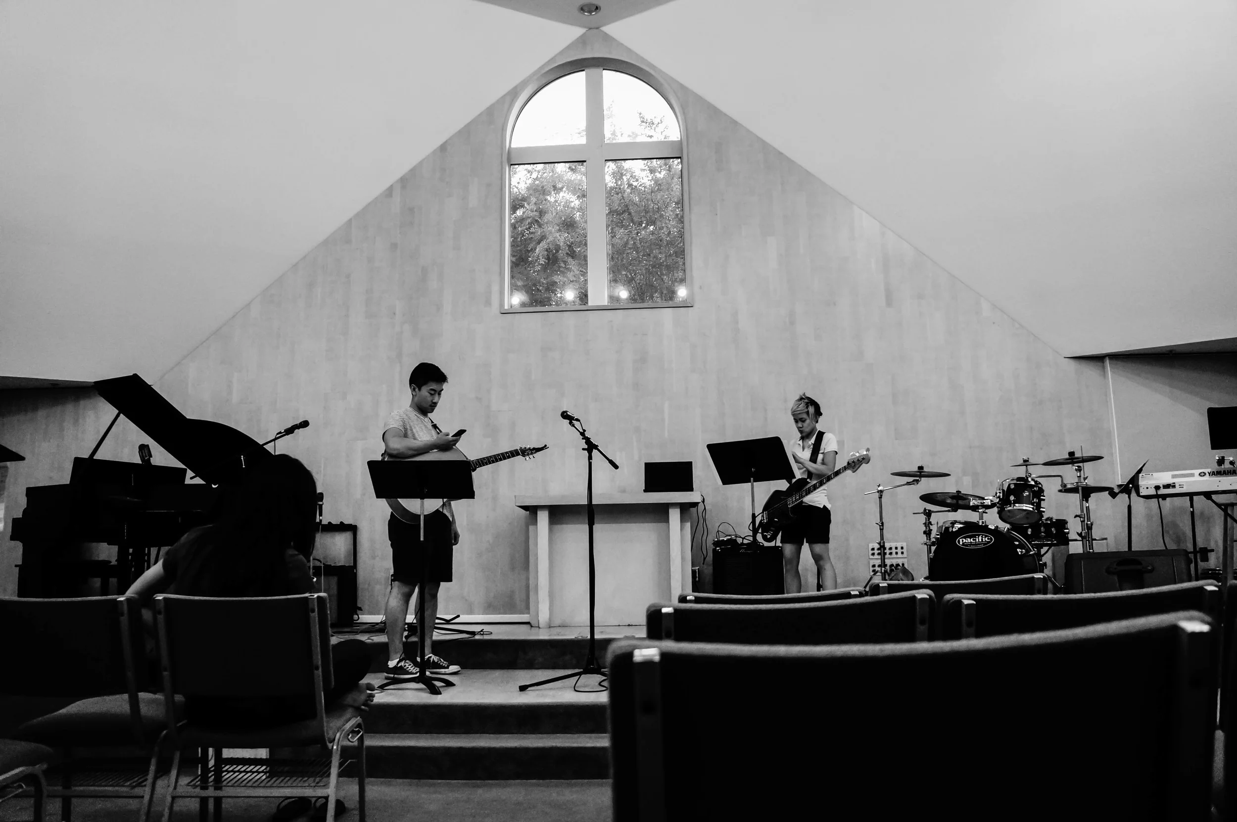 Besides my focus on photography, I also play drums for my church's band. Tonight we were practicing for a wedding coming up... but I caught a lot of our band members doing other things! (...or should I say an other 'thing?')