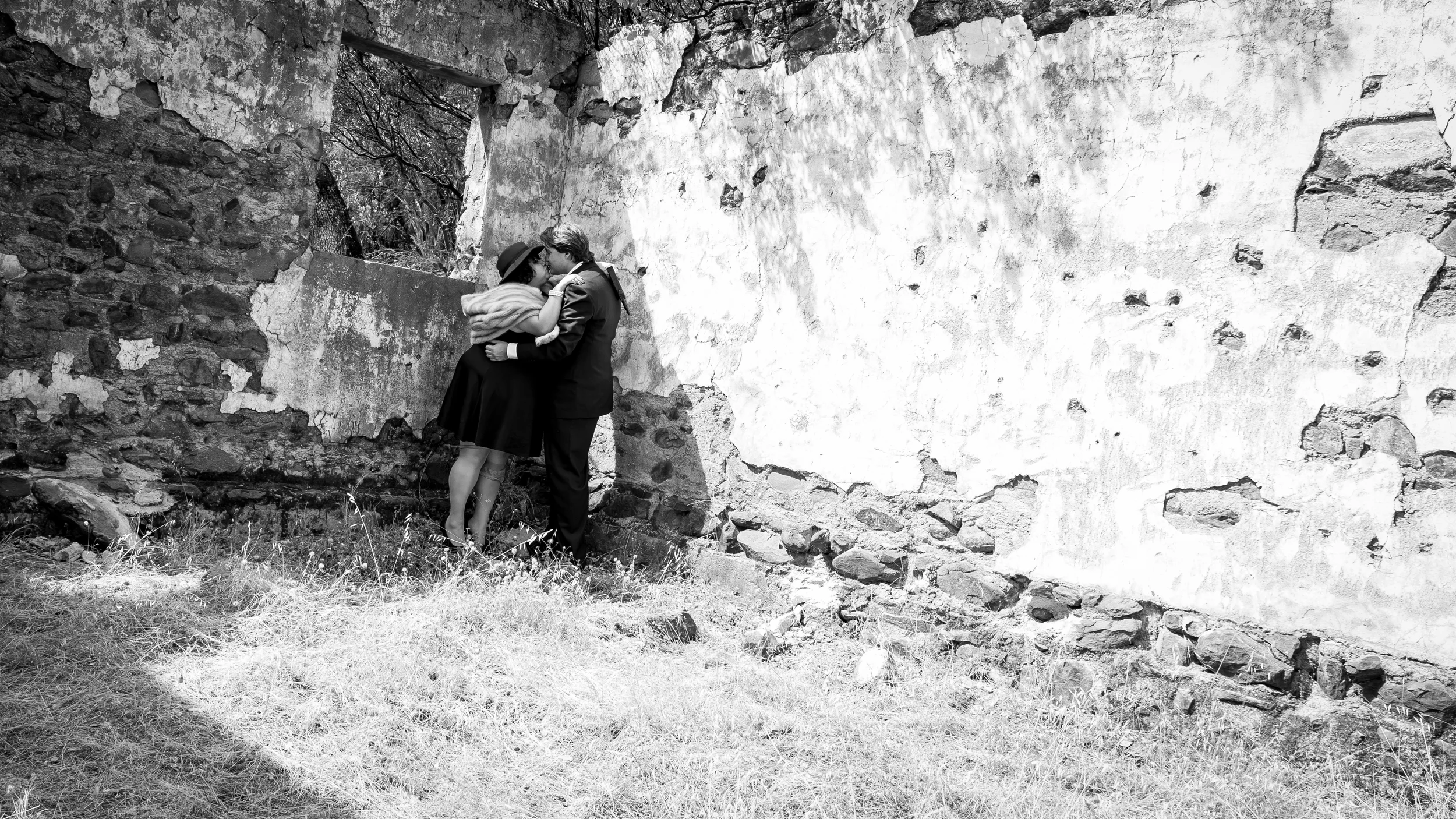 Of course even with the Bonnie and Clyde look there has to be some steamy romance going on. I really liked the idea of placing them in the corner and taking shots from across the room.